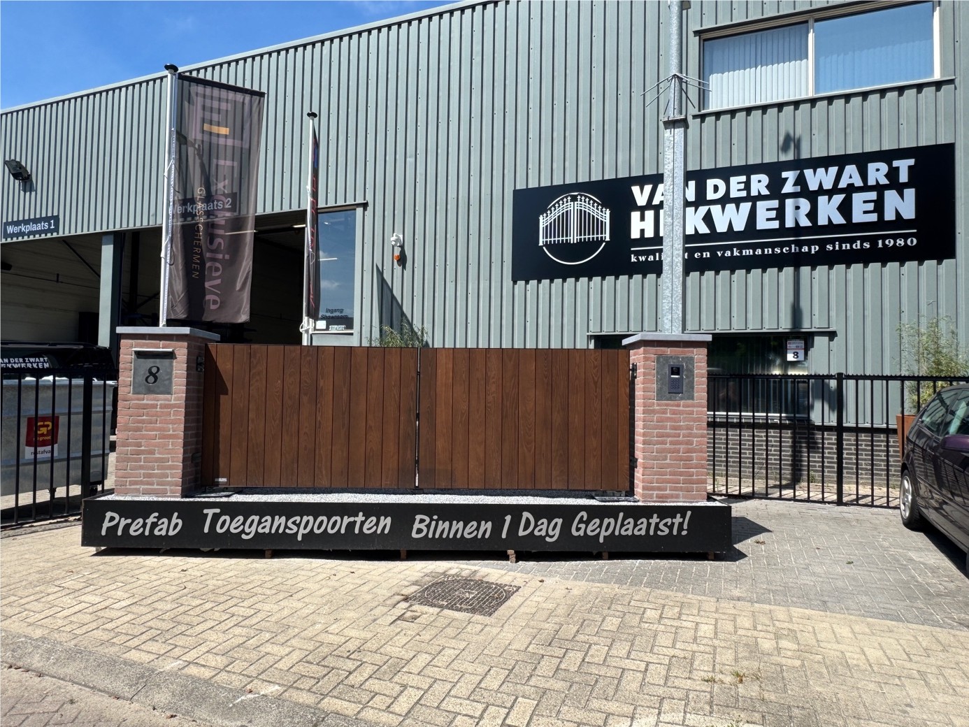 Bij van der Zwart Hekwerken combineren we vakwerk met moderne prefab-techniek. De poorten en gemetselde poeren worden op fundering in onze werkplaats op maat voorbereid en in één dag professioneel geplaatst. Volledig aangesloten, inclusief bekabeling, verlichting of brievenbus geheel ontzorgd en zo min mogelijk overlast.